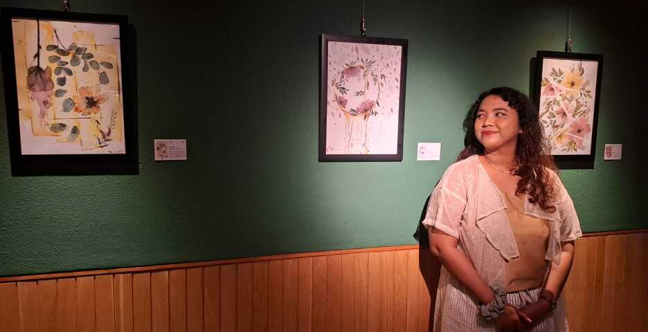 Ada lima lukisan bunga yang dipamerkan dan semuanya memiliki kisah dibaliknya. Bunga-bunga yang dihadirkan tidak sekedar menjadi simbol, melainkan refleksi dari kondisi emosional, yakni mekar, melembut, hingga perlahan memudar. Makna tidak terletak pada bentuk semata, melainkan pada bagaimana warna bergerak, berpadu, dan menghilang. Setiap lukisan menjadi ruang pelepasan, tanpa tuntutan kesempurnaan, dimana rasa bahagia, melankolis, hingga kegelapan larut dalam gerak dan warna