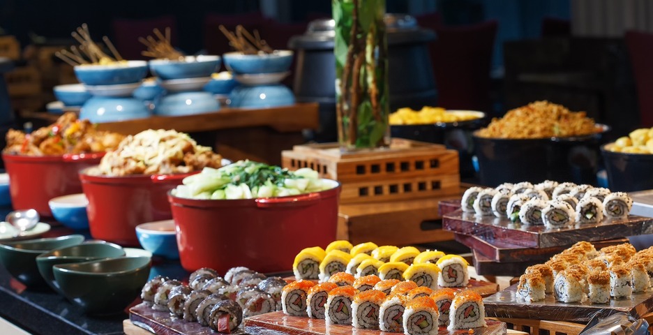 Untuk paket brunch dan dinner lebih menawarkan pilihan menu berkonsep buffet lengkap. Mulai dari Cheese Platter, Assorted Cold Cut, Fresh Pizza Live Station, Sushi & Sashimi Bar, hingga hidangan live cooking. Sebagai keistimewaan tambahan, tamu juga akan dimanjakan dengan pilihan menu Main Course A’la Carte secara cuma-cuma. Hidangan utama itu disajikan dengan standar kuliner premium demi melengkapi pengalaman bersantap yang tak terlupakan. Pilihannya antara lain Honey-Mustard Chicken Supreme, Asian Five Spice Duck Breast, Garlic Crust Barramundi, Roasted Lamb Rack, dan Pan-Seared Rib Eye.